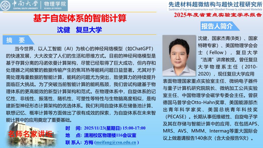 2025年11月23日下午,国家特聘专家、复旦大学“浩清”讲席教授沈