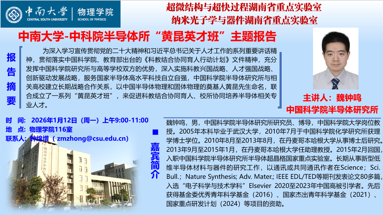 中南大学-中科院半导体所“黄昆英才班”主题报告