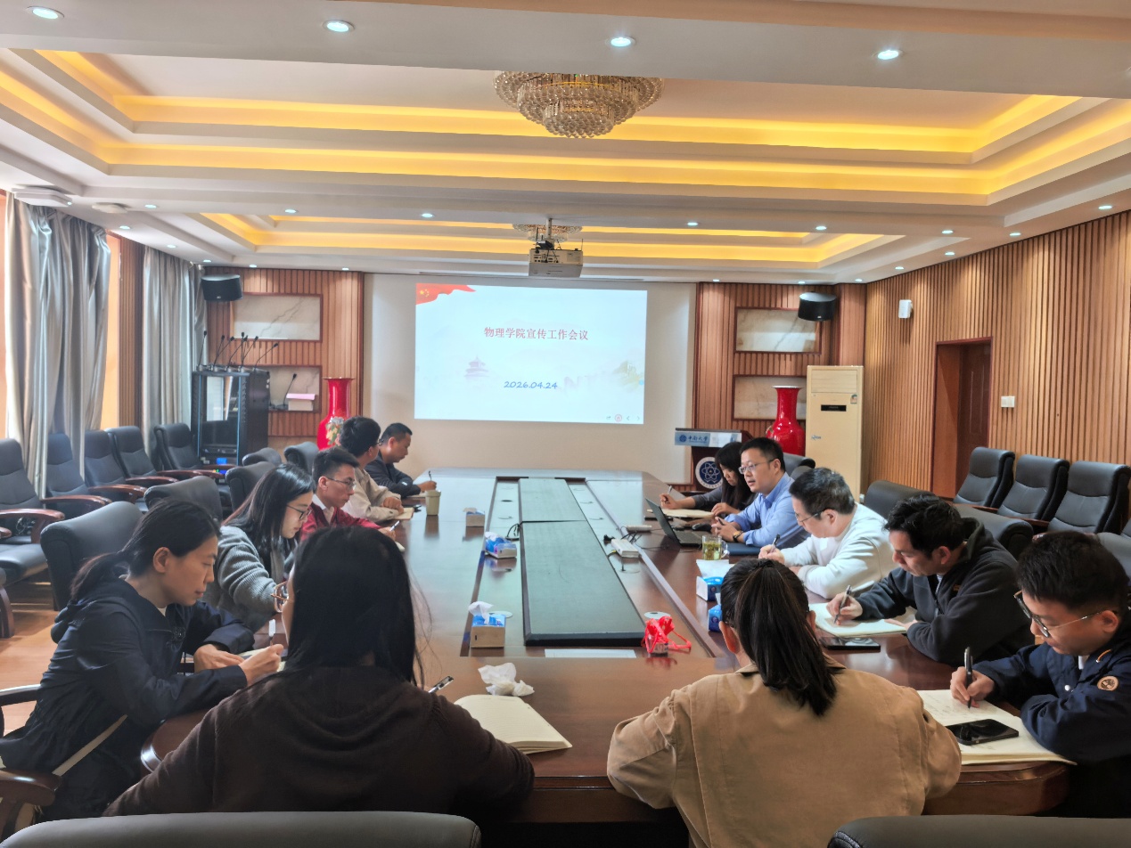 为进一步加强和改进学院宣传工作,更好地展现学院办学成果与师生风采,4月24日,物理学院院召开了宣传工作专题会议。学院党委书记谢群,党委副书记安少波,党委委员代国章,以及相关老师参加会议。会议由代国章主持。