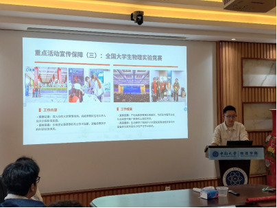 文艺部重点汇报了在主持稿撰写、背景PPT制作以及配合学院各类大型活动中的协调工作。部长缪凯在述职中提到,文艺部致力于丰富同学们的课余生活,通过举办各类文艺活动,展现了物理学子多才多艺的青春风貌。